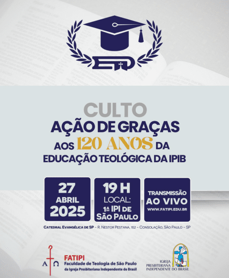 Todos estão convidados para celebrarmos ao nosso Deus por esses 120 anos de labor teológico da IPI do Brasil e da FATIPI (Faculdade de Teologia de São Paulo da Igreja Presbiteriana Independente do Brasil).