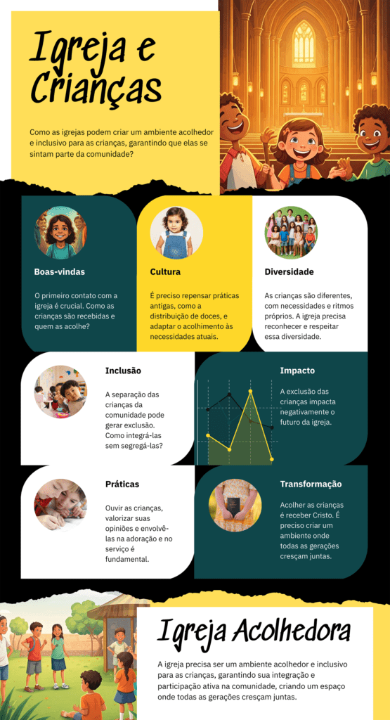 Quando a igreja adota tais práticas, ela não apenas transforma a percepção cultural sobre as crianças, mas também cria um ambiente em que o acolhimento e o pertencimento se tornam uma realidade vivida no cotidiano.