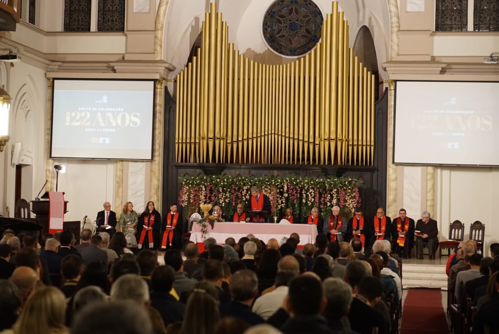 O culto de ações de graças pelos 122 anos de existência da IPI do Brasil, realizado na Catedral de São Paulo, às 20h, foi marcado pela alegria da jornada trilhada até aqui e pela convicção de que Deus tem sustentado nossas igrejas. Com a linda participação do Coro Maestro João Wilson Faustini e do pastor e músico Asaph Borba, louvamos a Deus por sua fidelidade na caminhada do seu povo.