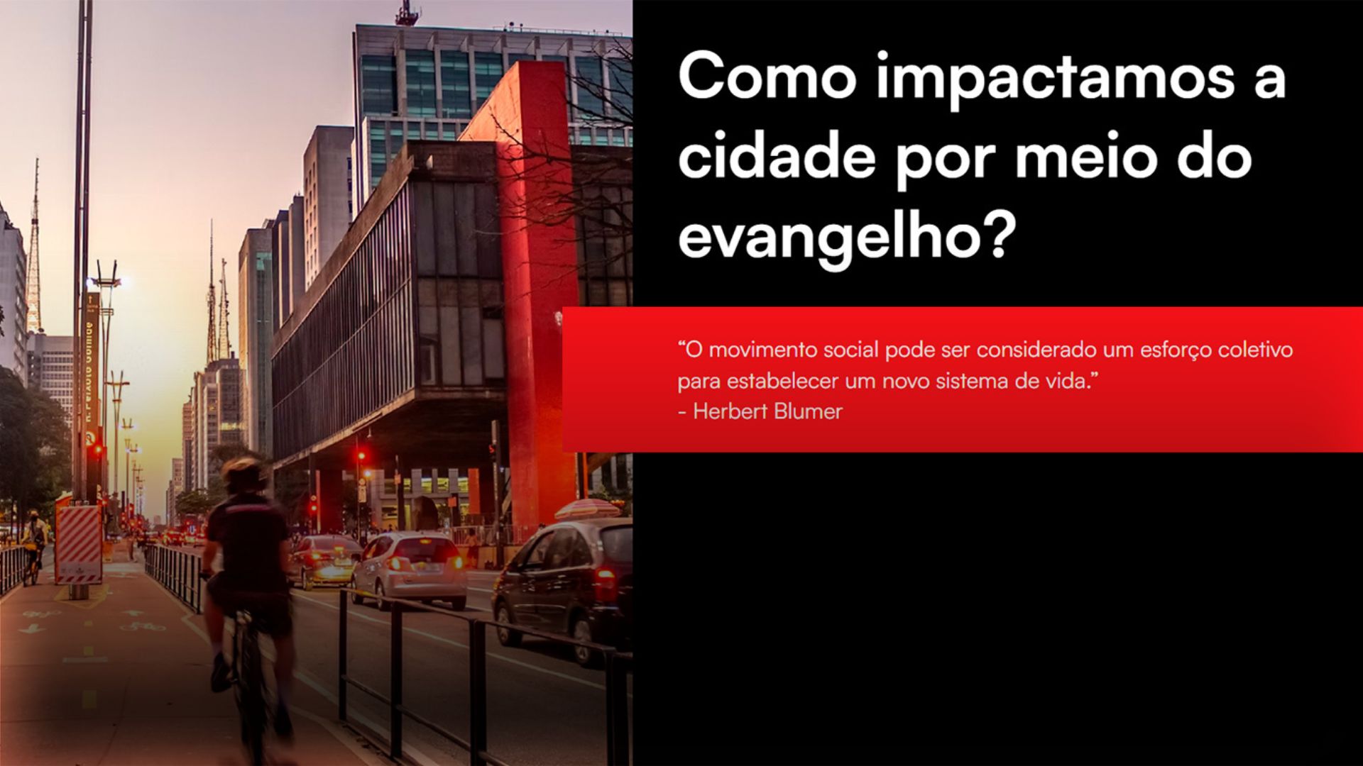 Inspirados por essa reflexão, os organizadores propõem que oração, visão estratégica e colaboração intersetorial sejam os pilares para uma nova atuação cristã nas metrópoles brasileiras.