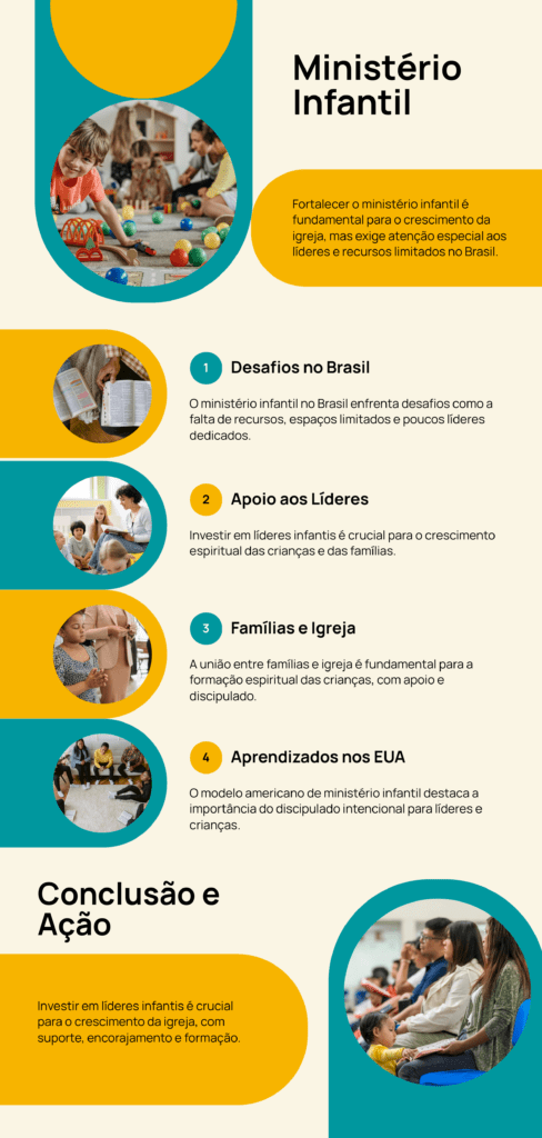 Se queremos igrejas saudáveis e em crescimento, precisamos investir naqueles que sustentam o ministério infantil. Pastores e líderes que cuidam das crianças frequentemente enfrentam desafios sozinhos, lidando com a sobrecarga e a falta de recursos. Ninguém deve caminhar sozinho no Reino de Deus. Quando a liderança é fortalecida, toda a igreja é edificada.